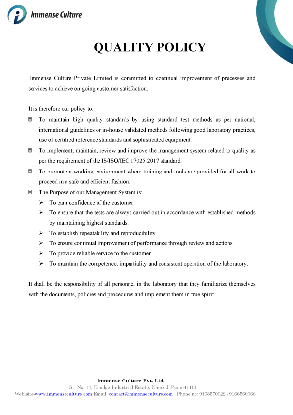 We ensure exceptional and reliable quality in all aspects of our work and recognise that quality determines the extent of our success We are committed to understanding and exceeding our customer's needs and expectations. Immense culture's commitment to quality is guaranteed through a comprehensive.